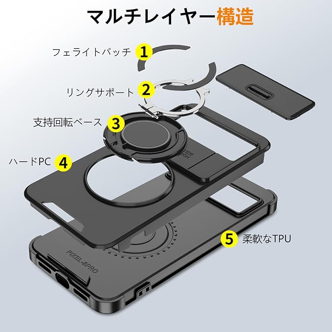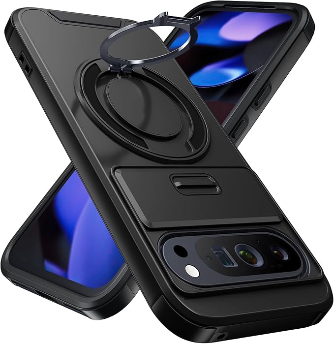 対応 Google Pixel 10 Pro XL 用 ケース リング付き スライド式カメラカバー 隠しスタンド 耐衝撃 スタンド機能 縦横両対応 車載ホルダー PC TPUバンパー 防塵 人気 落下防止 滑り止め 指紋防止 ピクセル 10 プロ XL カバー 黒 MJJ-1065-10-01-CP