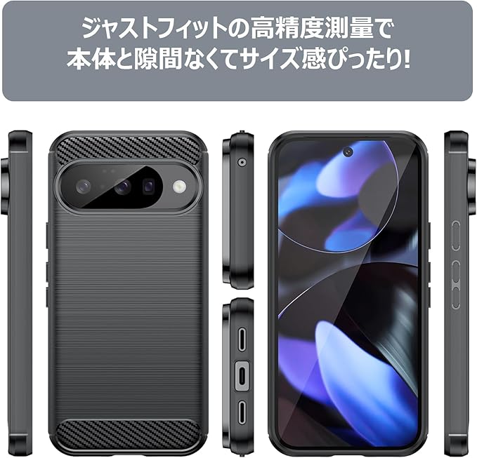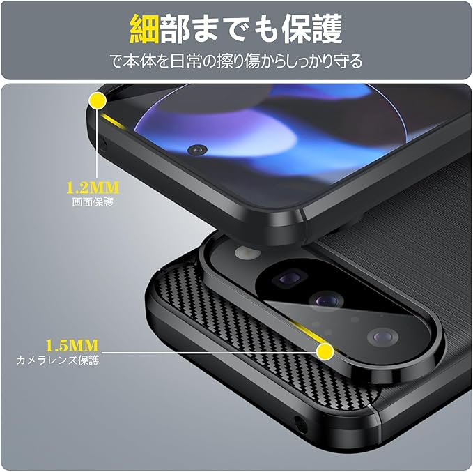 PNEWQNE 対応Pixel 10/10 Pro 用のケース シリコン TPU ソフト 炭素繊維 軽量 薄型 米軍MIL規格 耐衝撃 衝撃吸収 カメラ保護 ピクセル 10/10Pro 用の携帯カバー 耐久 黒 WY74-22