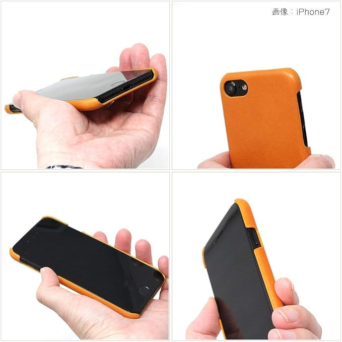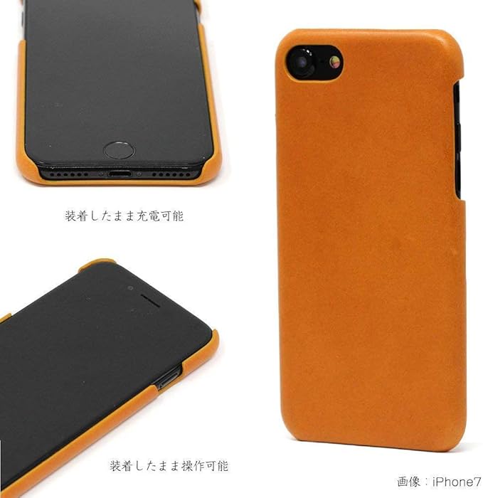 職人が1枚ずつ手貼りで仕上げています。端とカメラ穴は丁寧な樹脂仕上げ。スマホをまるっと包み込むように手に馴染みます。装着したまま操作、充電が可能です。