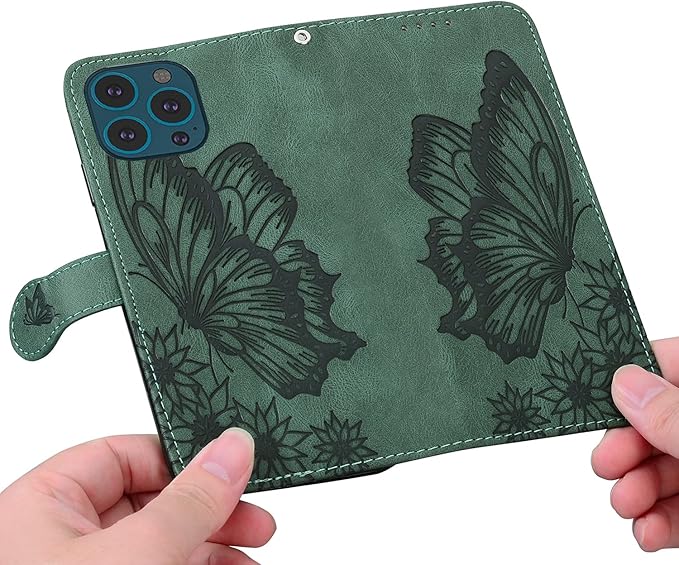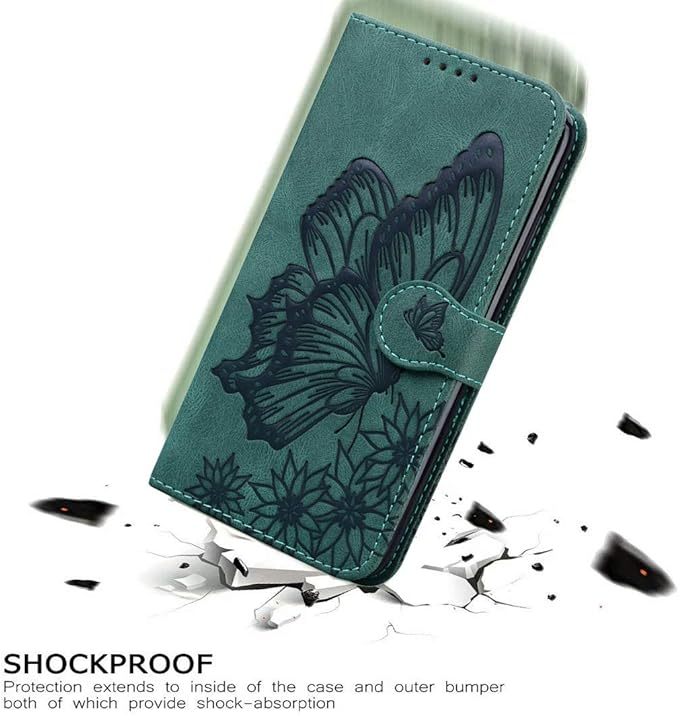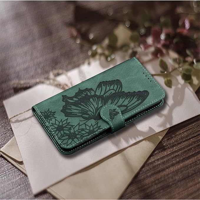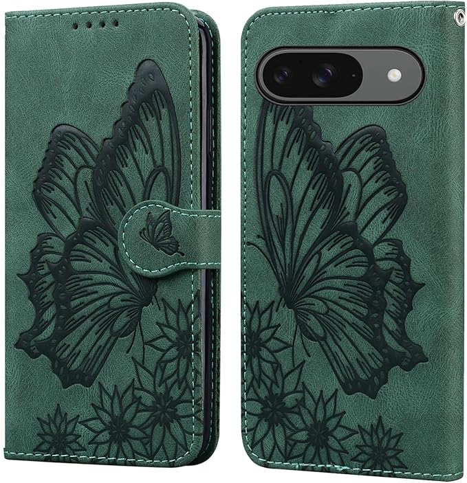 ケース と互換性のある Google Pixel 10 美しいレトロな蝶柄の表紙デザイン に適合するグーグルピクセル10 カバー と快適な質感 に適合するグーグルピクセル9 カバー 財布型 で収納しやすい 全面保護カバー スタンド機能 磁気ボタン に適合するぴくせる9 スマホケース 緑
