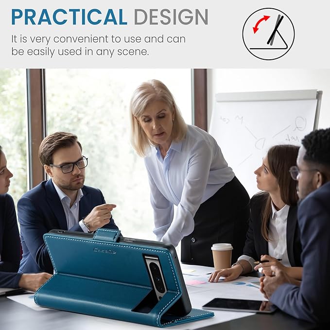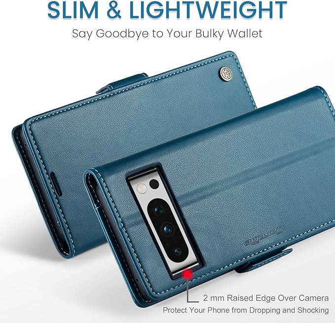 QLTYPRI Google Pixel 10 Pro XL 用 ケース 手帳型 ピクセル10 Pro XL 用 手帳型ケース PUレザー カード収納 スマグネット式 財布型 耐衝撃 全面保護 スマホケース スタンド機能付き ワイヤレス充電対応 ストラップホール付き (ブルー)