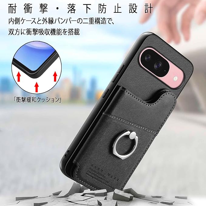 衝撃吸収機能:Google Pixel 10a ケース カード収納 リング は高品質のPUレザーと柔軟なTPU素材で作られており、放熱性と耐衝撃性に優れ、傷やほこりを防ぎます。手触りが良く、スマートフォンの取り付けと取り外しが簡単です。Pixel10a ケース 背面手帳型 リング付き カメラは画面より少し高くなるように設計されており、すべての側面を完全にカバーし、落下防止性能を高め、携帯電話を包括的に保護します。