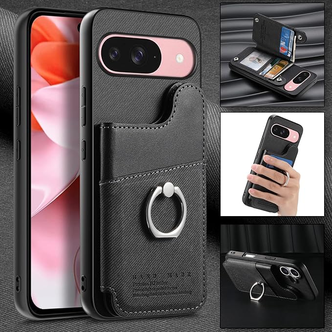 for Google Pixel 10a ケース 手帳型 グーグルピクセル10a ケース カード収納 背面 Googleピクセル10a スマホケース 財布型 pixel10a カバー リング付き スタンド機能 RFIDブロッキング ぐーくるぴくせる10a カバー 耐衝撃 シンプル リング おしゃれ - ブラック