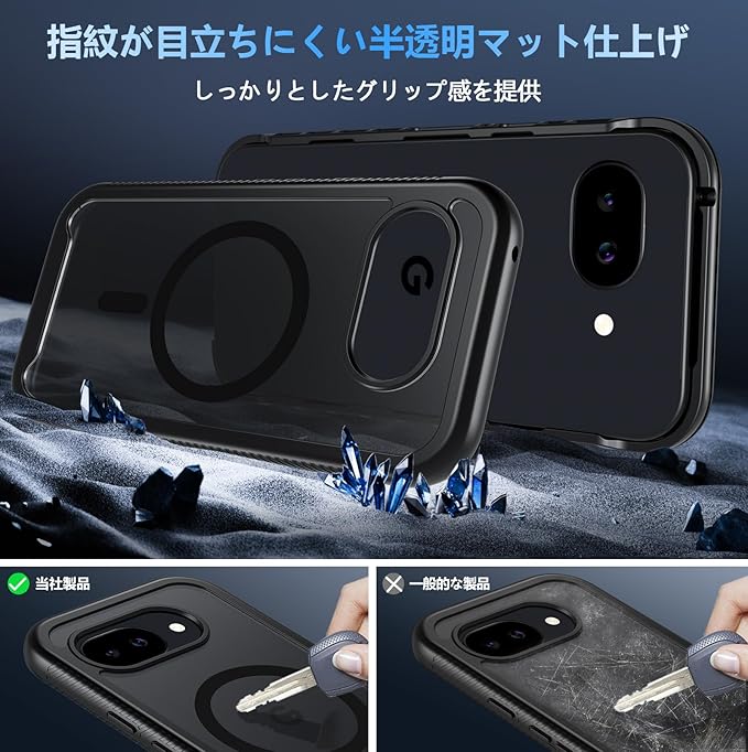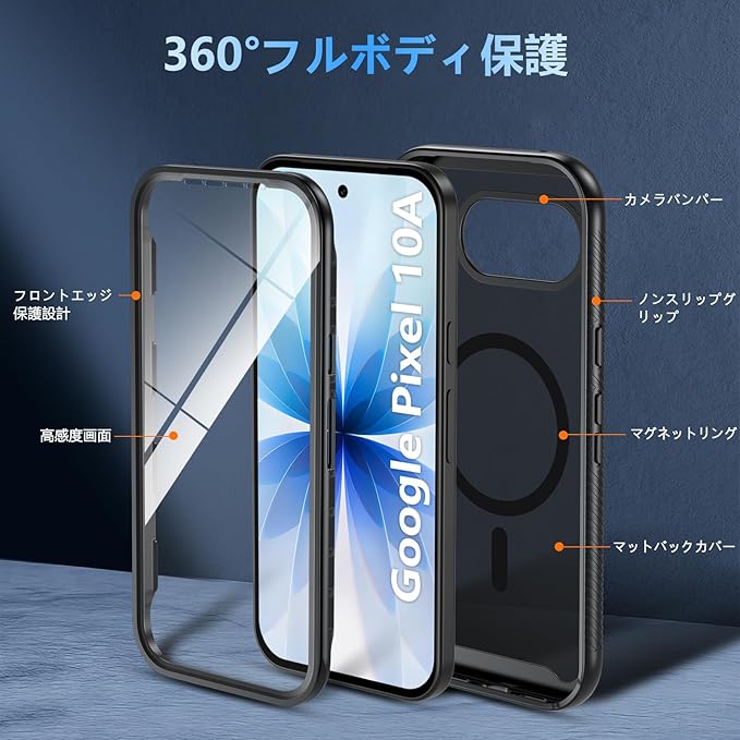 Fin2feel For Google Pixel 10a ケース【MagSafe対応】両面カバー マット半透明 黄ばみなし 指紋防止 耐衝撃 滑り止め グーグルピクセル10a ワイヤレス充電 ぐーくるぴくせる10a カバー6.3インチ(ブラック)