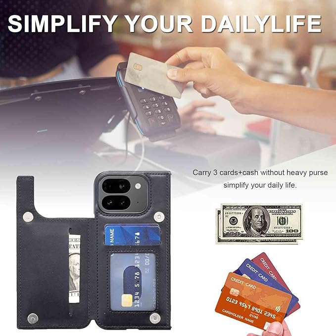【Viesa】背面カバー ケース手帳型 互換性 Pixel 10 Pro Fold 対応 GOOGLE ランヤード付 背面型ケース(ブラック) 美しい、軽 薄 持ちやすい、滑り止め、すり傷防止マグネット 横置きスタンド機能 財布型 スマホバックカバー ピクセ10プロ フォールド グーグルPixel10profold BLACK