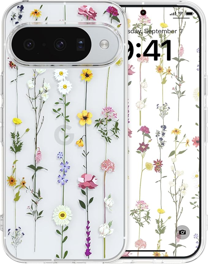 ZTOFERA Google Pixel 10/10 Pro 用花柄ケース かわいい グーグル ピクセル 10/10 Pro クリアケース 韓国 透明 おしゃれ 花 フラワーケース 薄型 軽量 柔軟な ソフト TPU スマホケース 人気 女子 耐衝撃 画面レンズ保護 携帯電話カバー