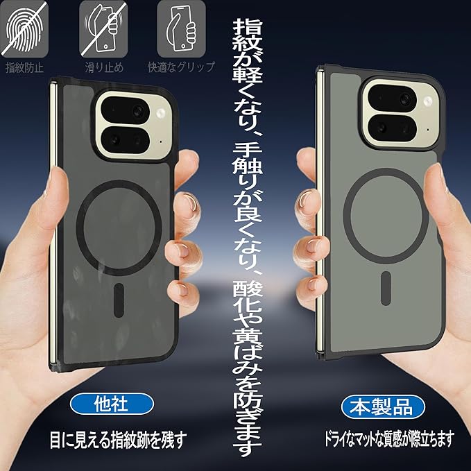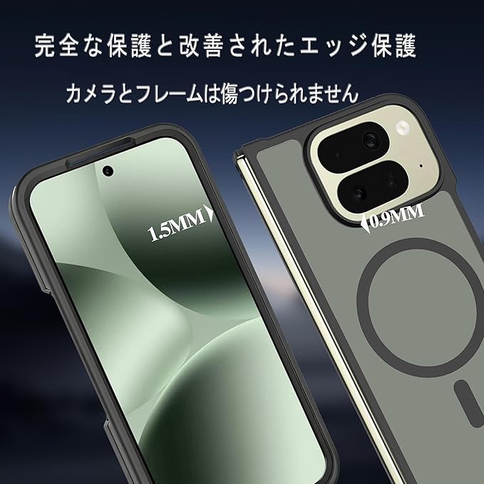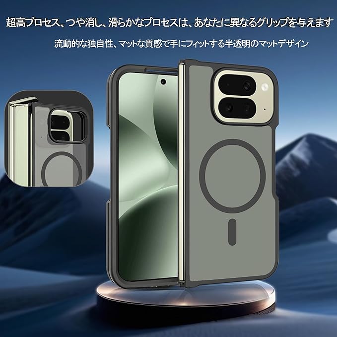 KPNS 対応 Google Pixel 10 Pro Fold 用 スマホケース 米軍MIL規格 半透明のマット背面 肌触りも良い 全面保護 衝撃防止 耐久性 ワイヤレス充電 指紋防止 黄ばみなし 保護カバー(マットブラック)