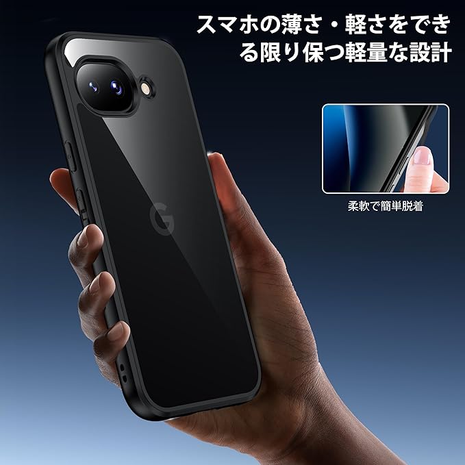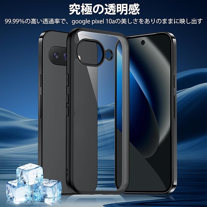 gogorelax for Google pixel 10a 用 ケース ブラック 米軍MIL規格 耐衝撃 ガラスフィルム付き グーグルピクセル10a 用 ケース 耐黄変 ピクセル10a 用 カバー googleピクセル10a 用 スマホカバー ワイヤレス充電対応 透明 ストラップホール付き