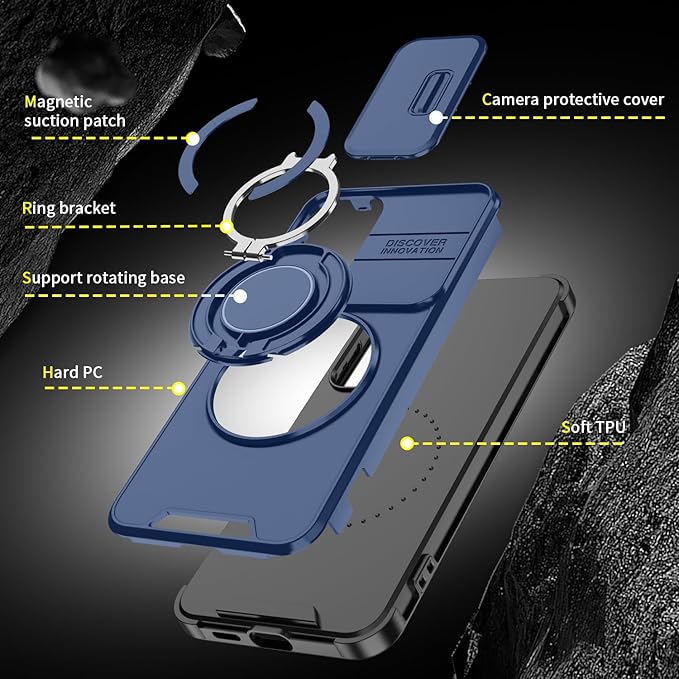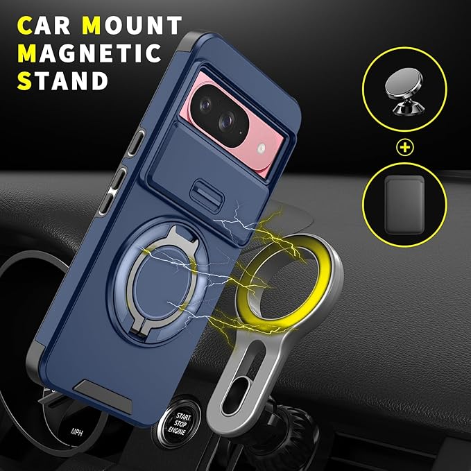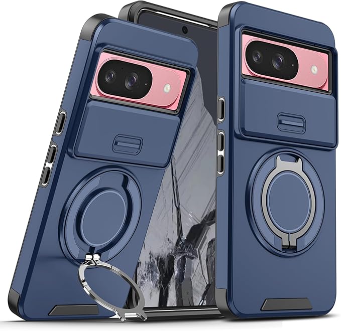 Anlalish携帯ケース 適用する Google Pixel 10 ケース 持っているカメラ保護 耐衝撃 Google Pixel 10 スマホカバー リング人 気 オシャレ車載ホルダー 対応 スライド 保護 カード (青)