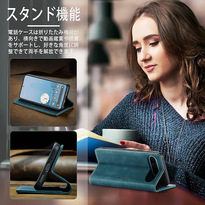 「PUレザー+TPU素材」ケースの外層は質感のあるレザーで作られており、柔らかく繊細な感触で、耐摩耗性と衝撃吸収性があり、変形しにくいです。色止め加工により、長期間使用しても色褪せしにくくなっています。ケースの側面と裏地はTPU素材で作られており、死角なく全方位から保護します。取り付け・取り外しも簡単で、携帯電話を傷つける心配もありません。