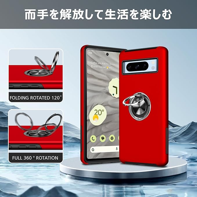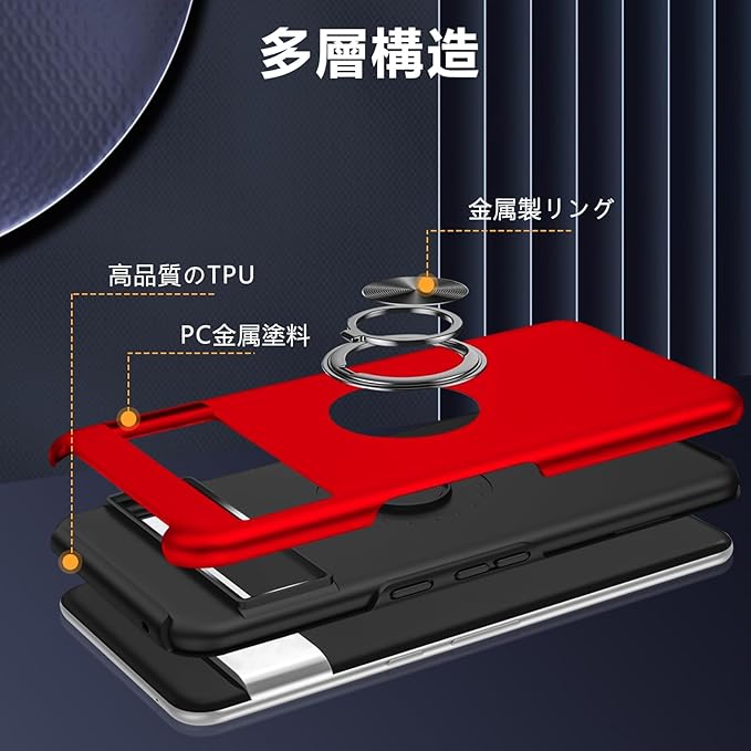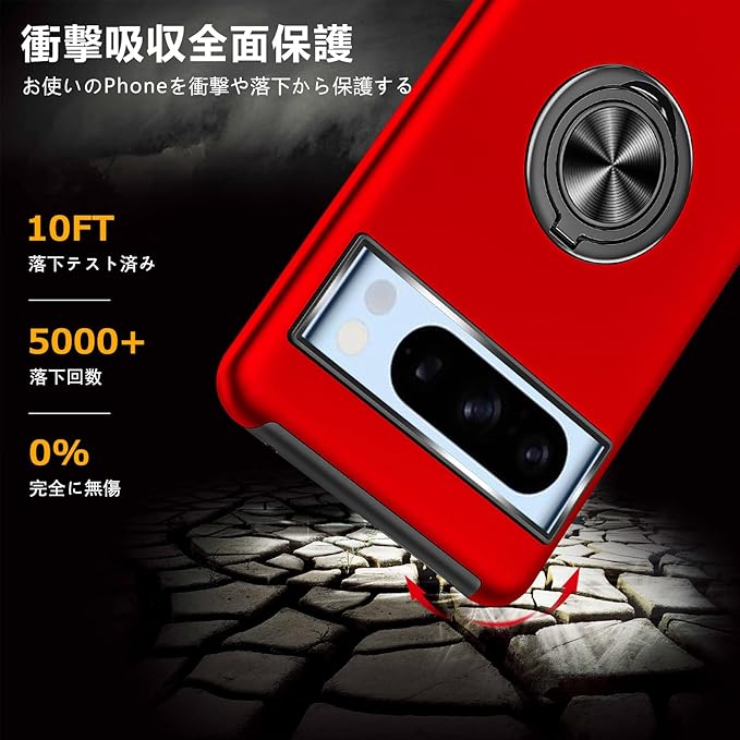 Tgaoleyd Google Pixel 8 Pro 用ケース リング付き 耐衝撃 tpu フルプロテクトデザイン スマホケース スタンド機能 全面保護 擦り傷防止 落下防止 米軍MIL規格 車載ホルダー対応 取り出し易い グーグル ピクセル 8 proケース オシャレ 人気 携帯カバー 赤 DA08-22
