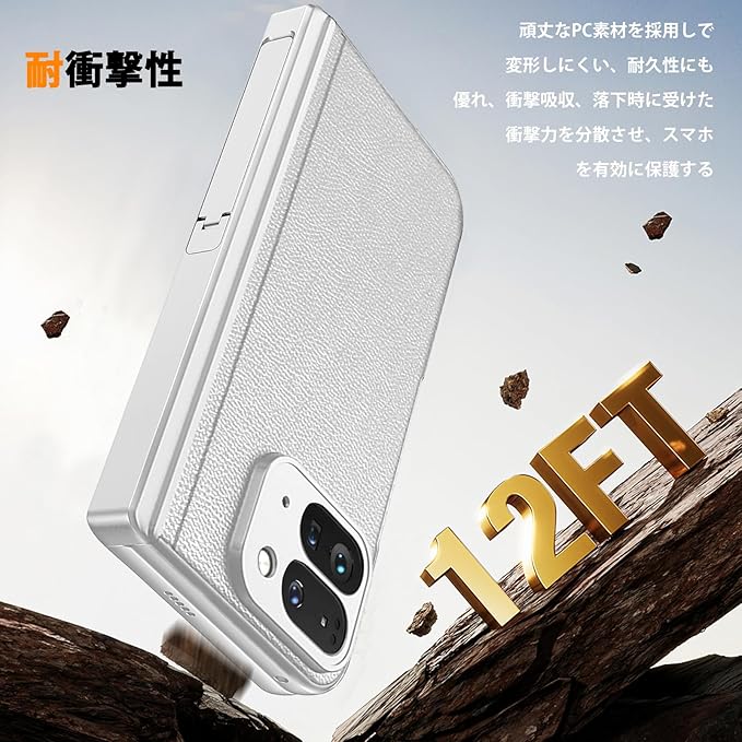 NINKI適応 Google Pixel 9 Pro Fold ケース スタンド機能付き 磁気吸着ヒンジ 折り畳み式 PC+レザー素材 スクリーンフィルム一体型 ヒンジ保護 衝撃吸収 ワイヤレス充電 グーグル ピクセル 9プロ フォールド カバー(シルバー)