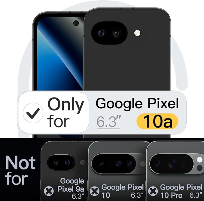[互換性] Google Pixel 10a用に設計されています。ご注意: Google Pixel 9a / Pixel 10 / Pixel 10 Pro / Pixel 10 Pro XLには対応できません。正確なカットアウトにより、すべてのボタンと機能に簡単にアクセスできます。充電パッドに平らに置いた場合に標準のワイヤレス充電をサポートします(磁気リングは含まれません)