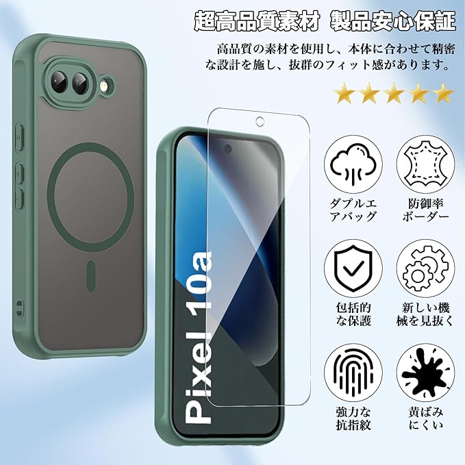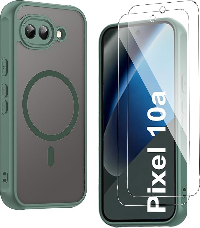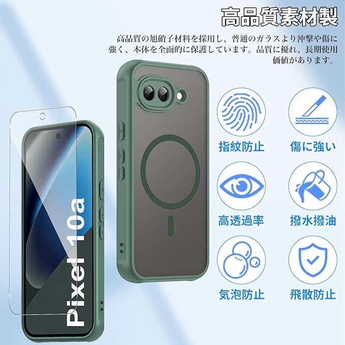 【1個+2枚セット】For Google Pixel 10a ケース(1個 MagSafe対応)+ガラスフィルム(2枚) Greerass 保護ケース ガラスフィルム付き MagSafe対応 薄型 超軽量 耐衝撃 擦り傷防止 指紋 汚れ防止 手触り良い 着脱簡単(グリーン)