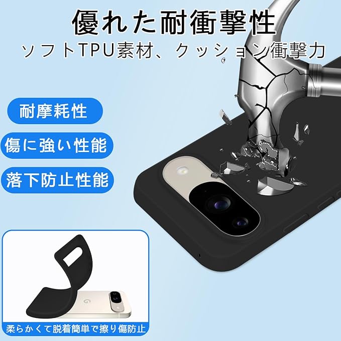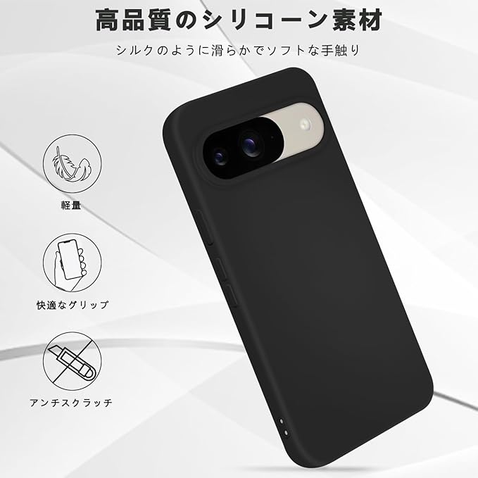 Google pixel 9/9PRO ケース シリコン 滑り止め スマホケース 耐衝撃 米軍MIL規格 SGS認証 指紋防止 カバー グーグル ピクセル 9/9プロ ケース 衝撃吸収 カメラ保護 携帯ケース ソフト 薄型 ワイヤレス充電対応(ブラック)