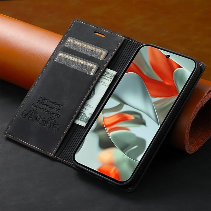 Pepmune Google Pixel 9/Pixel 9 Pro/Pixel 10/Pixel 10 Pro 用 ケース 手帳型 PUレザー カード収納 財布型 マグネット式 スタンド機能付き 耐衝撃 全面保護 スマホケース 衝撃吸収 薄型 軽量 カバー(ブラック)