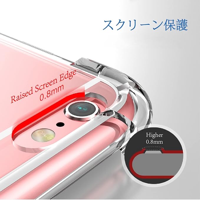 【軍事レベル落下保護】 落下時の衝撃を出来る限り緩衝出来るよう、四隅で衝撃を吸収する「エアクッションテクノロジー」を採用。四つ角部分がエアクッション構造となり、本体が落下しても衝撃を和らげしっかり守ります。携帯電話の曲線に従って高低差設計です、カメラレンズより0.8mm高めで、外部と直接接触の傷つきを避けます、本体の薄さを維持しつつ、カメラレンズもしっかり保護出来る高さで設計されています。