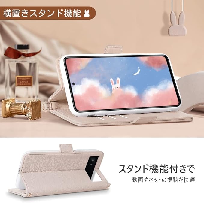 MAGICASE Google Pixel 6a ケース 手帳型 人気 グーグル ピクセル 6a 可愛い ウサギ どうぶつ 柄 女性 カード収納 横置き機能 スマホケース おしゃれ 財布型 全面保護 衝撃吸収 上品 ストラップ スタンド機 能付き 肌感レザー 着脱しやすい 携帯ケース かわいい 動物柄 男女兼用 Google Pixel 6a スマホケース対応 6.1inch対応アプリコット