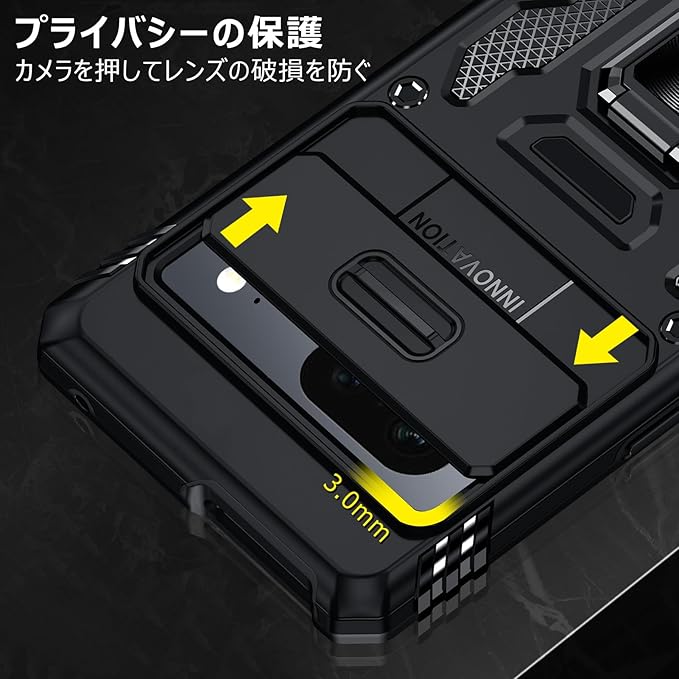 PNEWQNE Google Pixel 8 用のケース リング付き 衝撃吸収 耐衝撃 スタンド機能 米軍MIL規格 グーグル ピクセル 8 用のケース 全面保護 360 回転 滑り落ちにくい 人気 おしゃれ 携帯カバー 黒 WY88-59