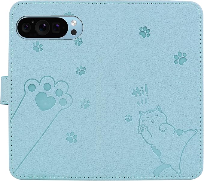 用の Google Pixel 10/10 Pro ケース 手帳型 グーグル ピクセル9 スマホケース 財布型 適用 グーグルPixel9プロ 携帯カバー case 幸せな子猫 ぐーくるぴくせる10 携帯ケース PUレザー 向け Google ピクセル9 ケース手帳型 人気 上質 かわいい 猫の足模様 マグネット式 カード収納 スタンド機能 全面保護 耐衝撃 (ブルー)