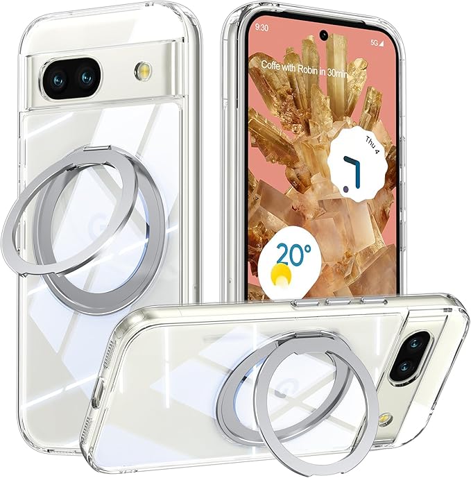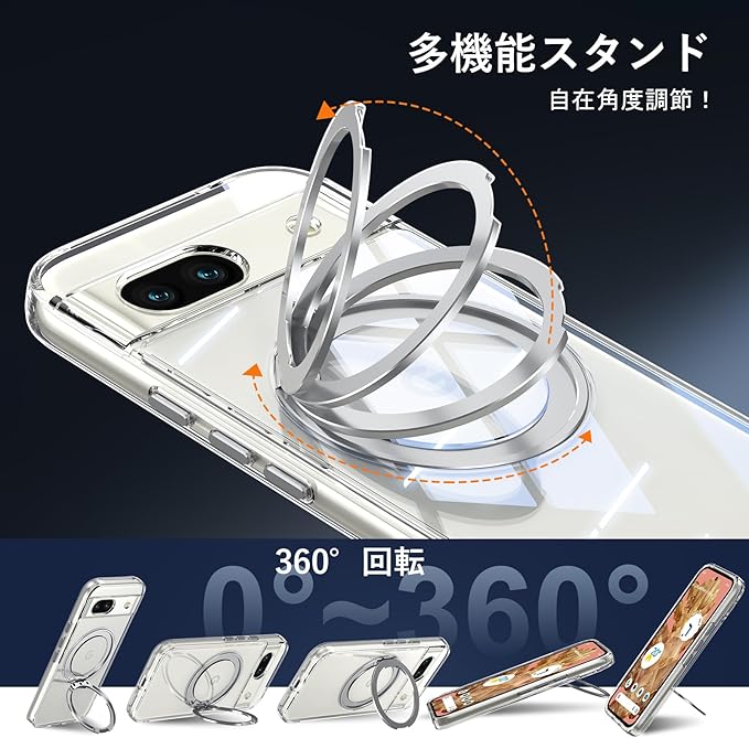 Pixel 8a 用 ケース Magsafe対応 Google ピクセル8a カバー 360 回転スタンド Uovon スマホケース 携帯ケース ワイヤレス充電 車載ホルダー 対応 ストラップ穴付き 透明 指紋防止 黄变防止 ・ クリア
