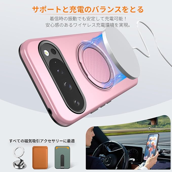 対応 Google Pixel 10/Pixel 10 Pro 用の ケース magsafe対応 360 回転スタンド 耐衝撃 米軍MIL規格 強磁力 リング付き ワイヤレス充電対応 10/10 Pro 用 カバー 指紋防止 レンズ保護 ピンク 525-pix10-06