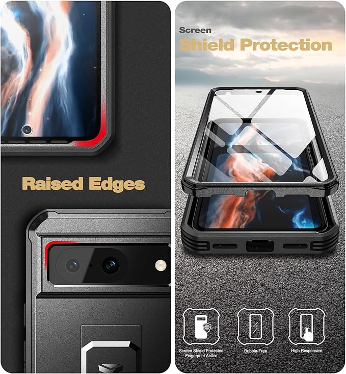 Dexnor Google Pixel 8用 全面保護ケース【二重フロントフレーム&キックスタンド】バンパーショック技術採用 耐落下 耐衝撃 頑丈バンパーケース(ブラック)