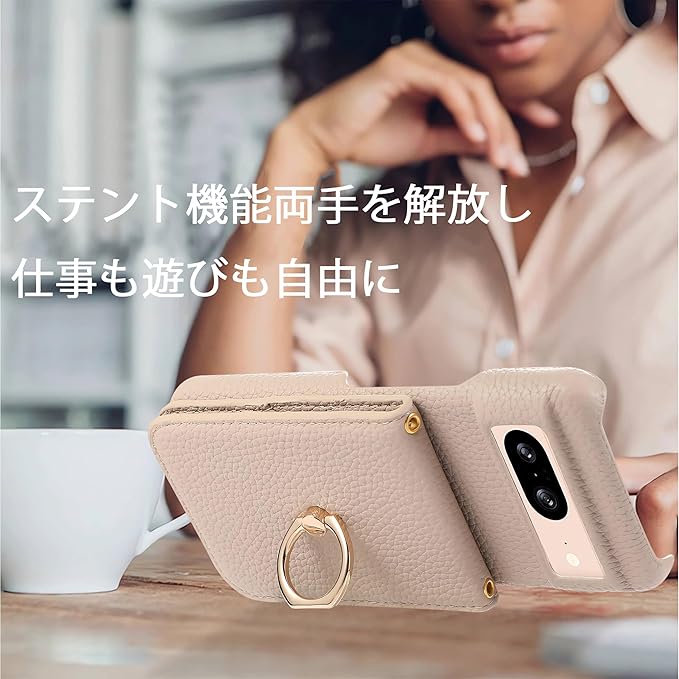 Google Pixel 7Pro用 ケース 日韓風 スモールフレグランス カードホルダー イミテーションレザー 斜めがけストラップ 長さ調節可能 財布型 携帯ケース カード収納 カード多機能 ファッション スマホケース 衝撃吸収 レンズ保護 軽量 レディース Google Pixel 7Pro khaki