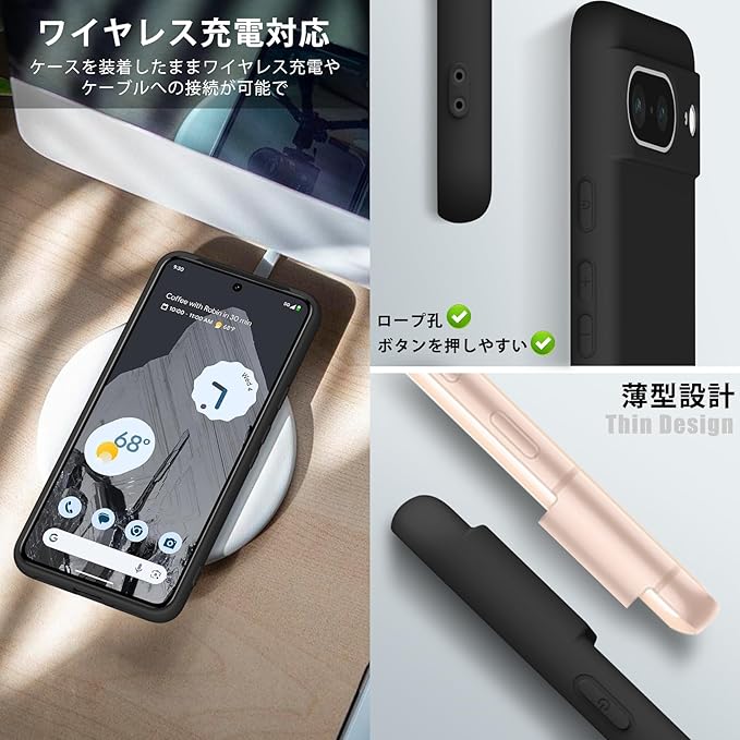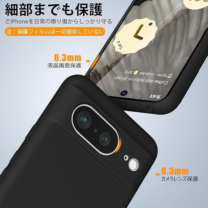 Tgaoleyd Google Pixel 8 用ケース シリコン 耐衝撃 衝撃吸収 ストラップホール付き 指紋防止 グーグル ピクセル 8 用カバー レンズ保護 tpu ソフトカバー 6.2インチ 一体型液状シリコン用ケース 薄型 軽量 人気 携帯カバー 黒 D81-08