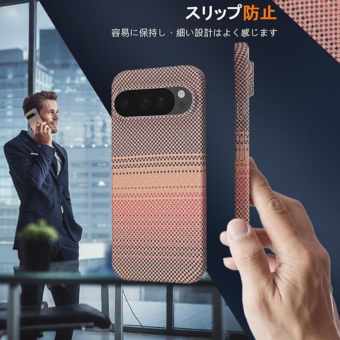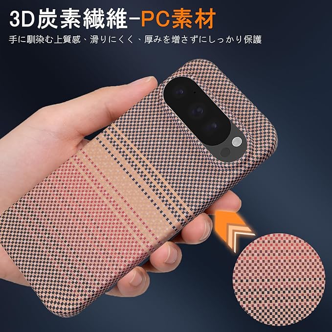 【Moilyo】Google Pixel 9/Pixel 9 Pro用 ケース アラミド繊維製 極薄・軽量型 耐衝撃 グーグル ピクセル9/ピクセル9 Pro 用 スマホカバー 指紋防止 カーボン調 耐久 全面保護ケース pixel9/9proカバー(Sunset Gold)