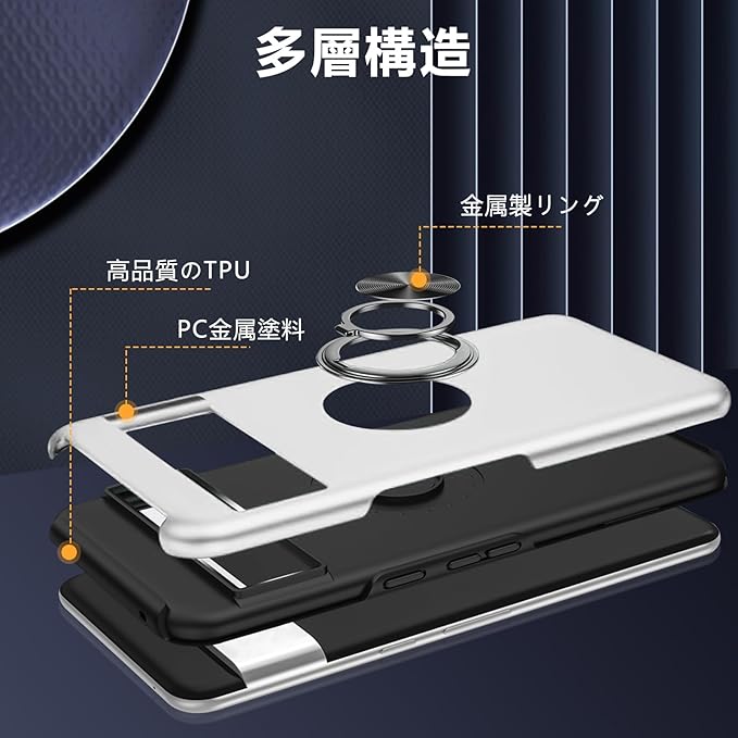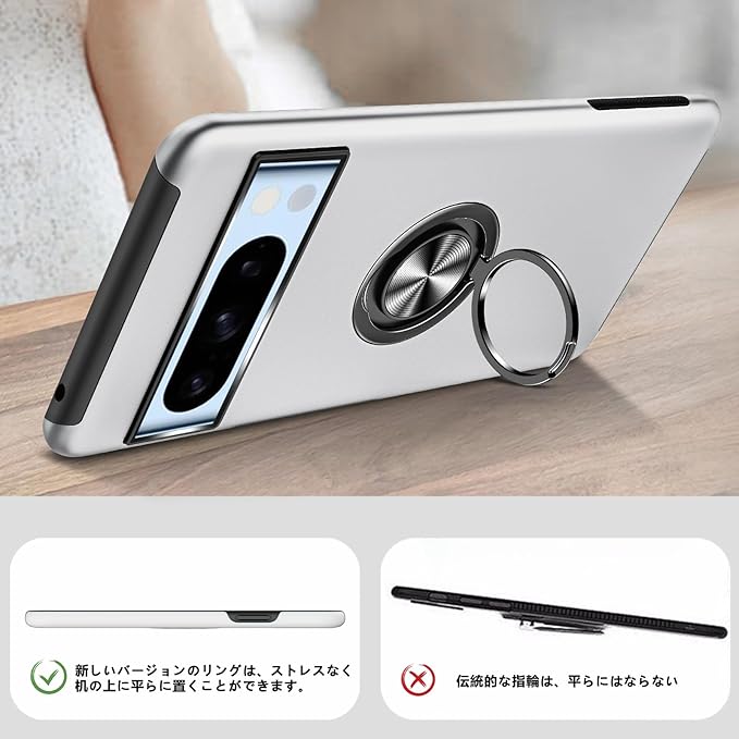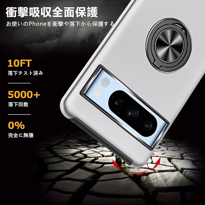 Tgaoleyd Google Pixel 7 Pro 用ケース リング付き 耐衝撃 tpu フルプロテクトデザイン スマホケース スタンド機能 全面保護 擦り傷防止 落下防止 米軍MIL規格 車載ホルダー対応 取り出し易い グーグル ピクセル 7 Pro 用カバー オシャレ 人気 携帯カバー 銀 DA08-65