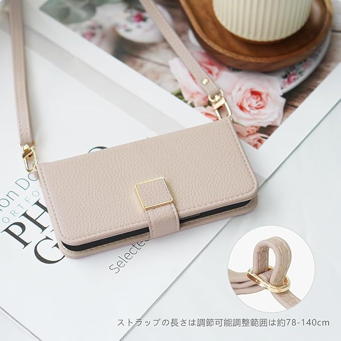 【高級感があるショルダーストラップ財布型ケース】シンプルなメタルアクセサリーが見た目もデザインも高級感を醸し出します。しっかりとした作り、縫製・質感・手触りにも優れています。精密なデザインで、装着状態でも電源ボタン、音量ボタン、コネクター等が問題なく利用できます。ギフトとしてもおすすめいたします。