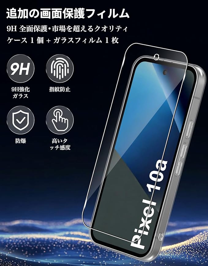 【1個+1枚セット】For Google Pixel 10a ガラスフィルム+ケース Lucktree カバー ガラスフィルム付き TPU素材 保護ケース 超薄型 耐衝撃 指紋防止 擦り傷防止 さらさら肌触り (クリア)