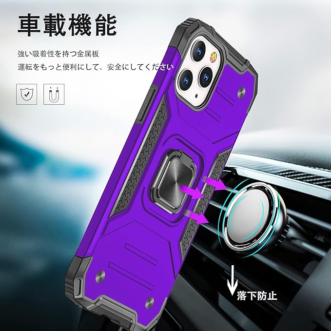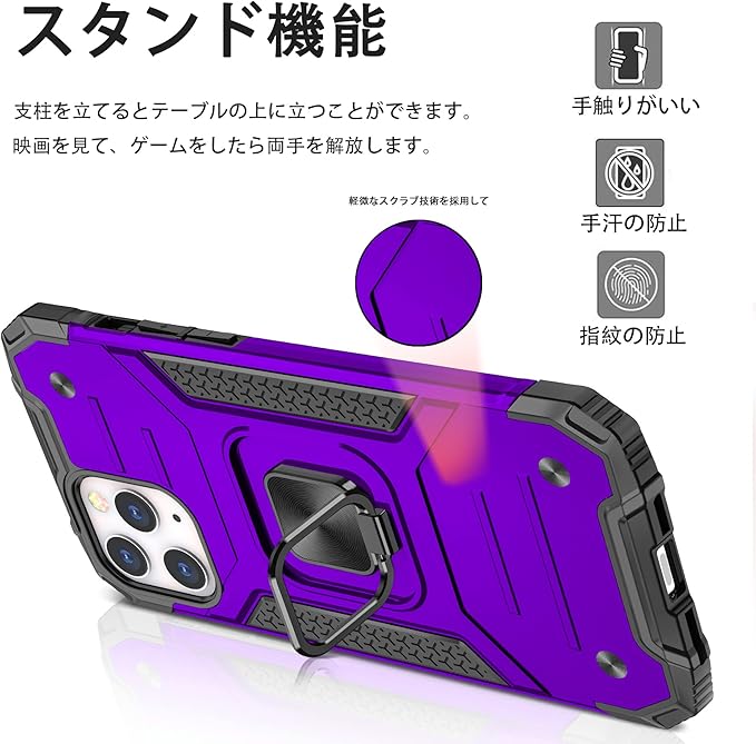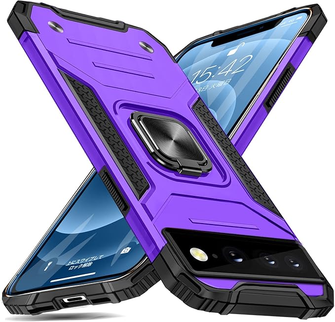 Google Pixel 7 Pro ケース リング付き 米国軍事MIL標準取得 耐衝撃 落下防止 スタンド機能 PC+TPU二重構造 防塵 薄型 軽量 一体型 360度回転 変形防止 全面保護カバー Google Pixel 7 Pro ケース (パープル) MJJ-1051-65-07