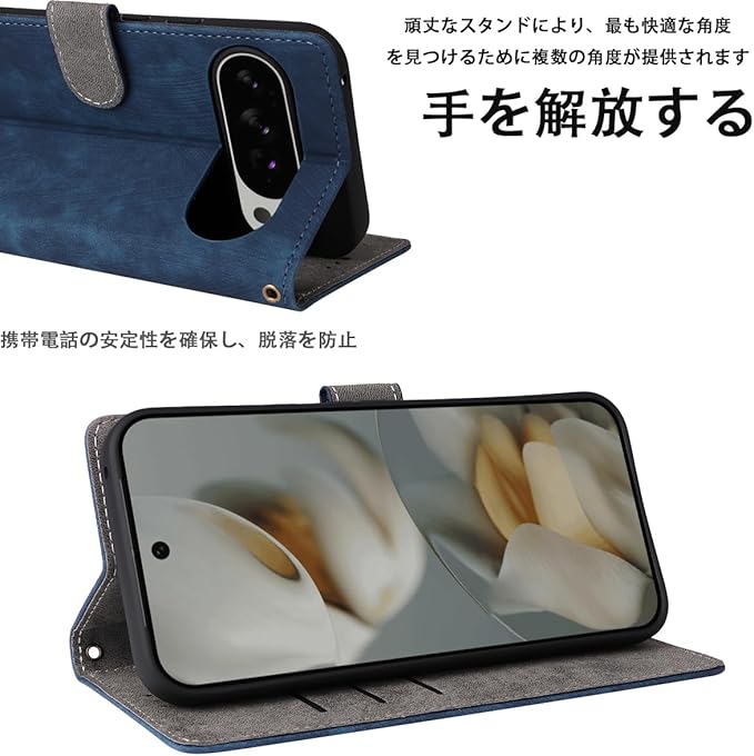 For Google Pixel 10 Pro XL ケース 手帳型 スマホケース 【SHANCHI】(掛绳 x 1) 磁気開閉 耐衝撃 カード収納機能 レンズ保護 合成皮革 + TPUケース 指紋防止 (ブルー)