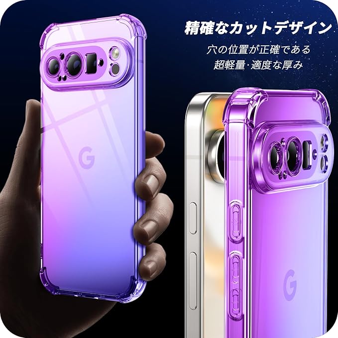 Google Pixel 9 PRO XL 用 ケース クリア 耐衝撃 TPU 透明 Pixel 9PRO XL 対応 スリム 薄型 指紋防止 米軍MIL規格取得 衝撃吸収 滑り止め カメラ保護 ワイヤレス充電対応 おしゃれ 黄変防止 防塵 紫+青 D543-pixel 9pxl-02