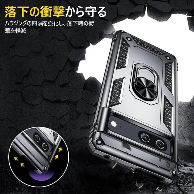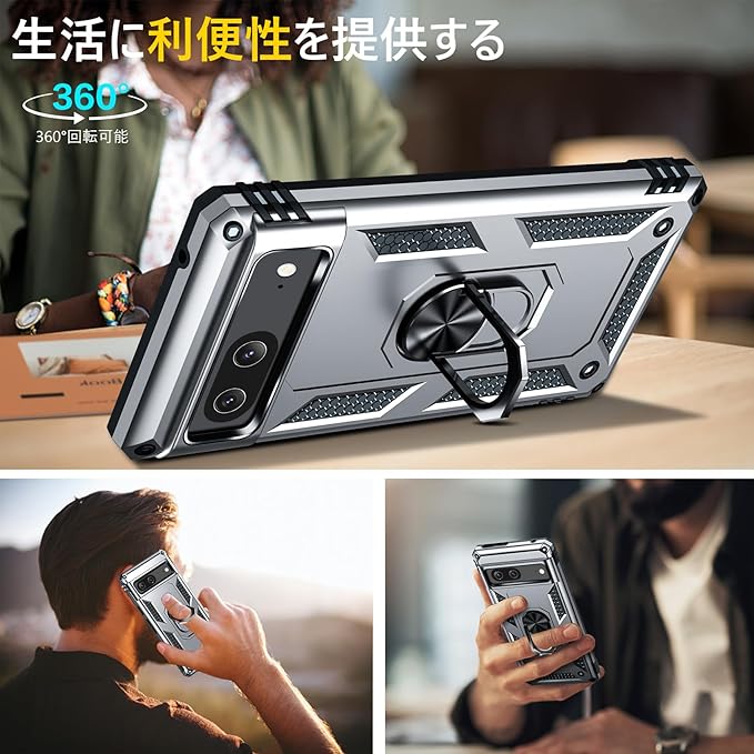 Google Pixel 9 Pro XL 用ケース リング付き 衝撃吸収 耐衝撃 頑丈 米軍MIL規格 スタンド機能 車載ホルダー対応 TPU PC素材 バンパー グーグル ピクセル9 pro xl 用ケース レンズ保護 滑り止め 擦り傷防止 一体型 全面保護カバー 銀 J03-77
