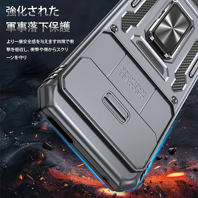 【機種対応】対応 Pixel 9 Pro XL 6.8インチ Pro 用のデザインです、他用の機器と互換性がない。【二重構造】PC(ポリカーボネート)バック+TPU(シリコン)バンパー+金属ホールリング、内側TPU素材とハードPCフレームで制作するため、耐久性に優れた、外部からの衝撃を内部に吸収されて、側に滑り止めの設計で、落下を防止にできます。全カバー式の音量ボタン&スイッチボタンの設計は、ぴったり合うだけではなく、操作しやすいよう最も適したサイズに作られています。【スライド式カメラカバー】スライドカバーはより滑らかに開閉できるようになりました。カメラレンズもスライド式カバーで砂・埃などの侵入を防ぎます。ケースのエッジは液晶画面より高さの設計で、液晶画面を保護することができます。【スタンド機能】スタンドの機能はスマホを横に放置できて、長時間の動画視聴でも手に持つ必要がなく、超らくらく動画視聴が可能です!長時間での新幹線、飛行機の中での暇つぶしに最適ですよね。携帯ケースと指リングは一体型な設計で複雑な取り付けがなく、落下しにくく、擦り傷、ぶつかり合う、落下からスマートフォンを保護することができ、手に持って持ち運ぶことも安全&便利です。車載の磁気吸盤にしっかりと吸着することができ、運転中に携帯電話のナビゲーションなどの機能をより便利に使用することができます。(ご注意:ケースの背面は金属製部分がありますので、ワイヤレスチャージャーを使うことときにカバーケースを取り外してください。USB lightning ケーブルで充電するならOKです。)【カラーバリエーション】豊富なマルチカラーラインナップ!シンプルなベーシックカラーからポップなアクセントカラーまで、あらゆるスタイルとシーンに合わせてお選びいただけます。日常の気分やお好みに合わせて、自由にコーディネートできる楽しさをご提供します。