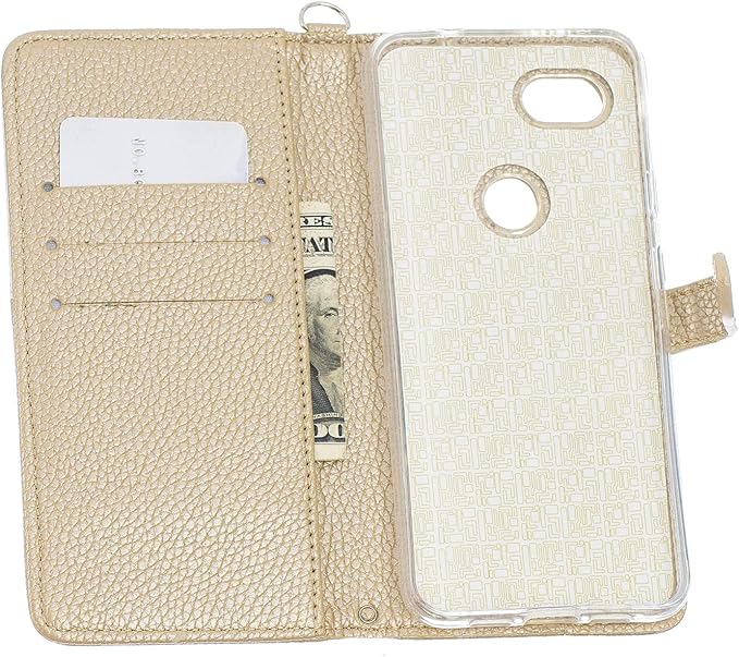 case for Google Pixel 3aケース グーグル ピクセル3aケース 手帳型 ストラップ付き ( 保護ケース カードポケット付き 財布型 横置きスタンド機能付き マグネット式 全面保護 (for Google pixel 3a, A4-ゴールド)