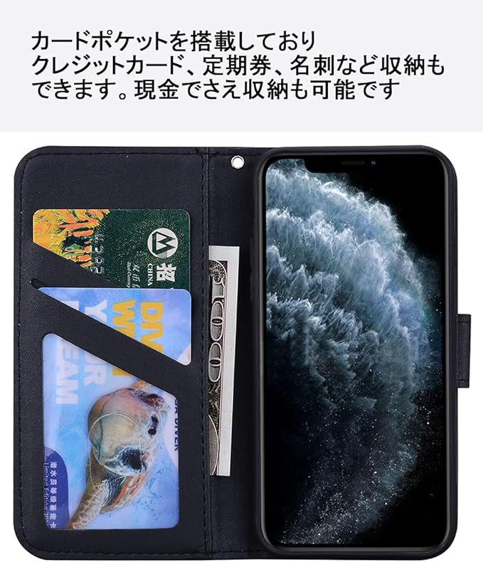 ❷【収納性・財布型】ケースの裏側にカードポケット2つ,クレジットカード、idカード、定期券を収納可能、透明ポケットに写真、名刺入れも可能です。❸【横置きスタンド機能付き】動画の視聴やテレビ電話などを長時間行っても疲れません、新幹線、飛行機の中で暇つぶしに最適♪。