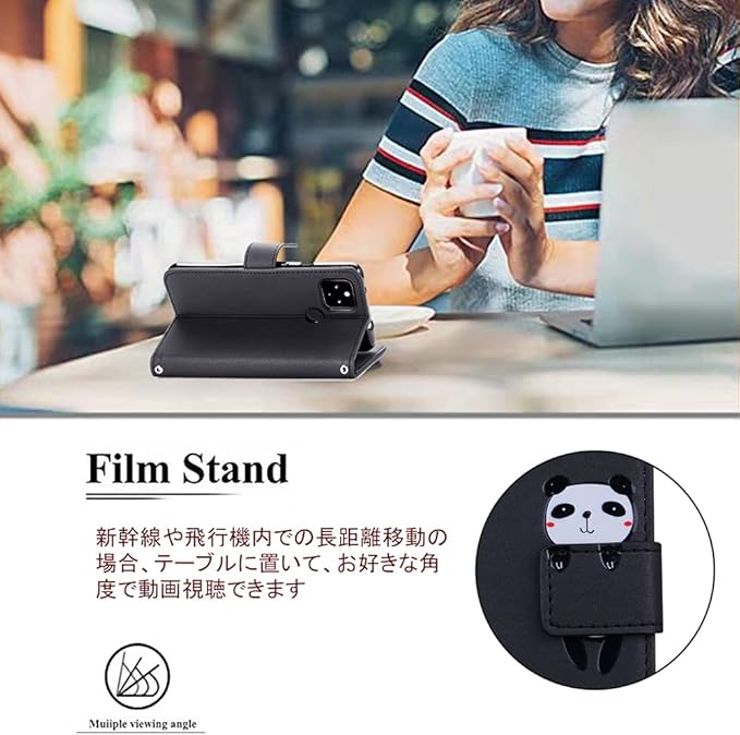 Google Pixel 4a 5G ケース 手帳型 グーグル Pixel 4a 5Gケース ピクセル 4a 5G 手帳型ケース 財布型 カバー 可愛い キャラクター 携帯ケース スマホケース 携帯カバー レザー 柔らかいTPUケース 肌触り良い革 スマホけーす ケータイケース カード収納 財布付き カードホルダー ベルトマグネット スタンド機能 パンダ かわいい 動物柄 薄型 防水 ノート型 人気 おしゃれ 男女兼用 Google Pixel 4a 5G 対応 ブラック