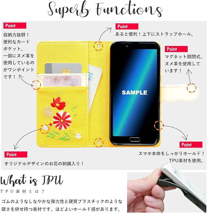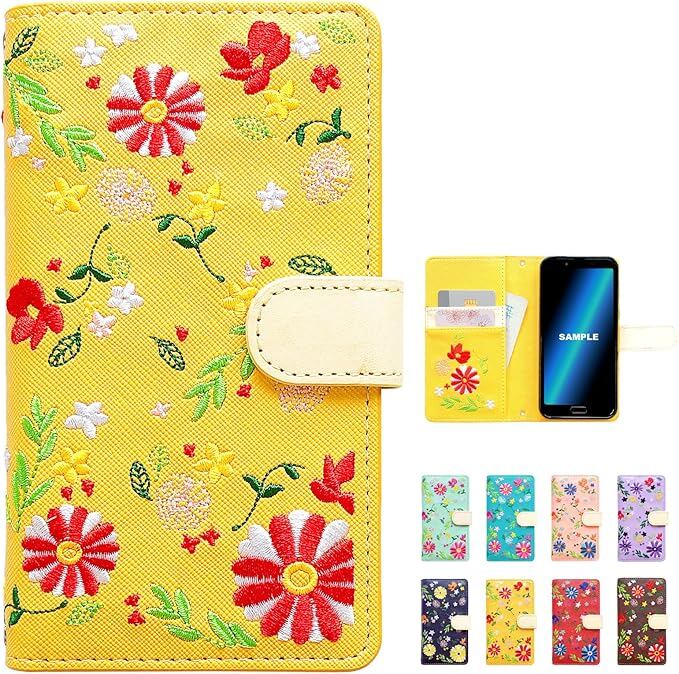 Google Pixel 9 / 9pro 用 手帳型 ケース カバー pixel9 pixel9pro ピクセル スマホケース 手帳型ケース ちょいヌメ花刺繍 イエロー