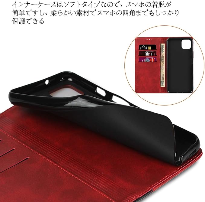 Google pixel 4 ケース pixel4 ケース グーグル pixel4 カバー グーグルpixel4 スマホケース ピクセル4 手帳型 適用 case 【iCovercase】 内蔵マグネット 携帯カバー カードポケット スタンド機能 シンプル カバー クラシック 大人 落ち着いた色 TPUケース付き 耐衝撃 2色組合せ レトロ レッド