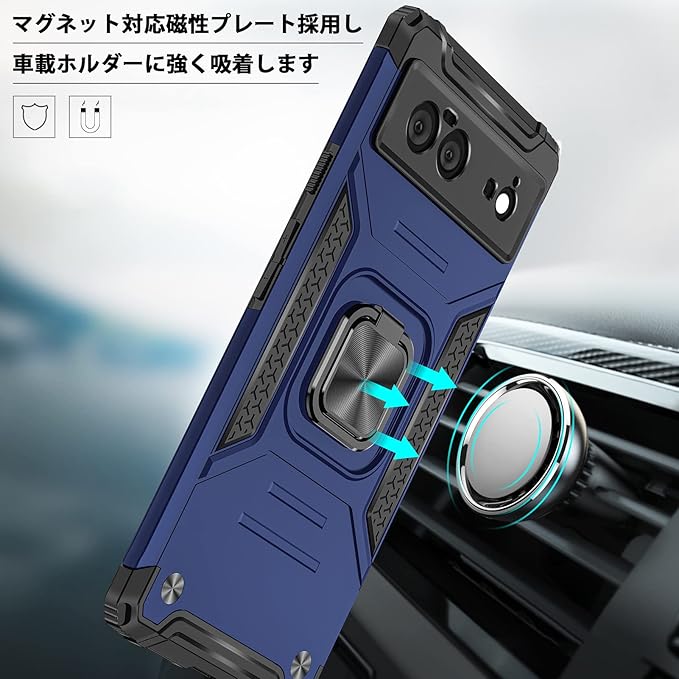対応 Google Pixel 6 用の ケース リング 耐衝撃 衝撃吸収 携帯カバー 米軍MIL規格取得 TPU+PC 指紋防止 車載ホルダー対応 スタンド機能 防塵 薄型 軽量 落下防止 擦り傷防止 レンズ保護 青86-APix6-03