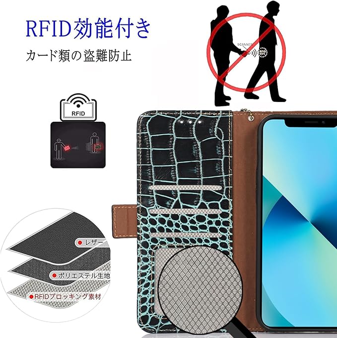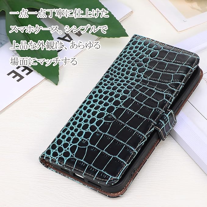 Google Pixel 7a ケース 手帳型 本革 ワニ柄 グーグル ピクセル 7a 牛革 財布型 鰐柄 クロコダイル柄 耐衝撃 [RFIDブロッキング] カード収納 マグネット式ボタン 横置きスタンド機能 便利 財布型携帯 スマホケース 水色 Rureu, Eyu-7a-green