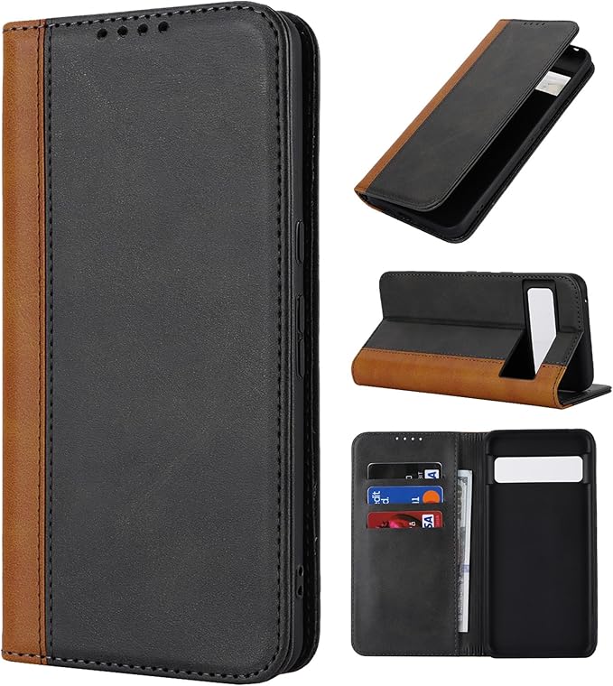 Google Pixel 8 Pro ケース グーグル pixel 8 pro 手帳型 google ピクセル 8 pro カバー グーグル ピクセル 8 プロ 手帳ケース google pixel 8 pro case zouzt 合成皮革 財布型 カード収納 ベルトなし マグネット スタンド 4色 ブラック+イエロー