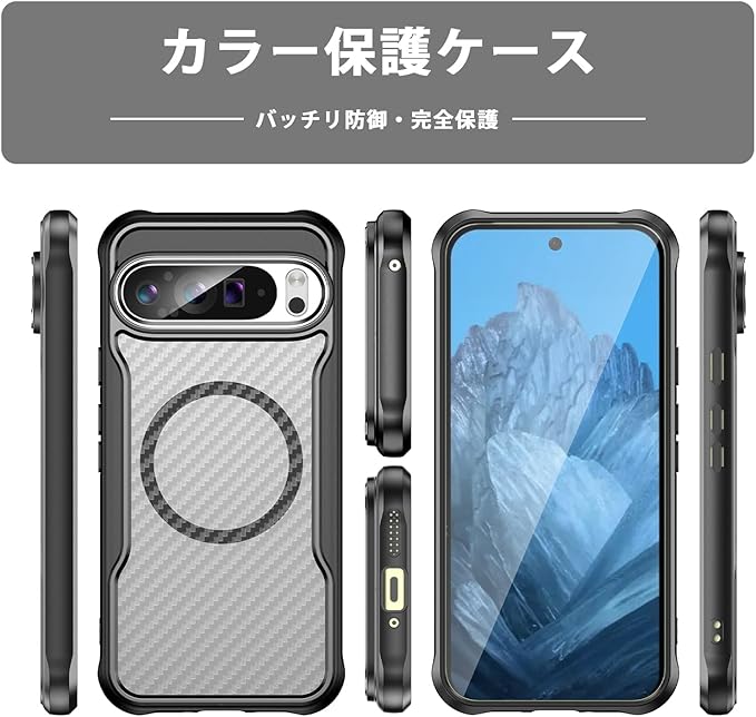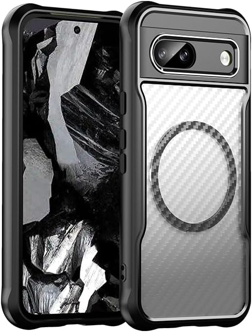 Google Pixel8A 用 ケース クリア Magnetic 耐衝撃 PC背面+TPU 柔軟 防指紋 米軍MIL規格 ストラップホール付き ワイヤレス充電対応 透明 薄型 黄変防止 滑り防止 (黑) 22-Pixel8A-01