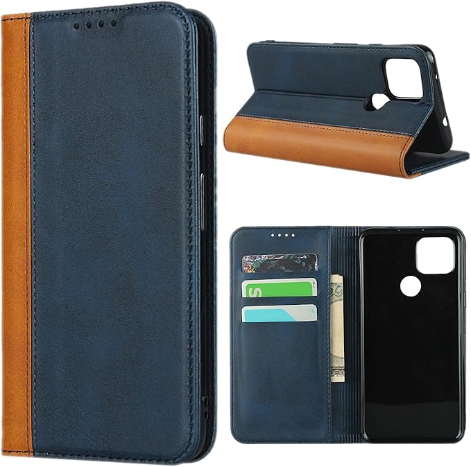Pelanty for Pixel 4A 5G ケース手帳型 for Google pixel4a 5G 6.2'' 携帯カバー 財布カード入れ 横置きスタンド機能 内蔵マグネット 合成皮革+TPU グーグルピクセル4A 5G スマホケース 耐衝撃 2色組合せ ブルー X ライトブラウン