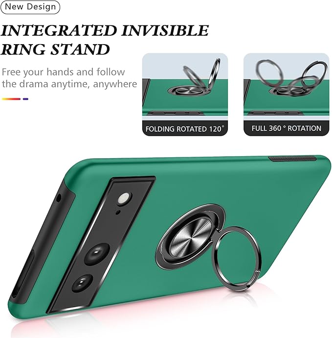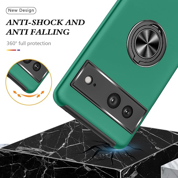 Google Pixel7 用 ケース リング付き TPU 耐衝撃 スマホケース 車載対応ホルダー対応 スタンド機能 軽量 薄型 グーグル ピクセル7 用 ケース カメラ保護 衝撃吸収 指紋防止 黄変防止 一体型 四隅滑り止め 手触り良い 保護カバー グリーン SJ15.257