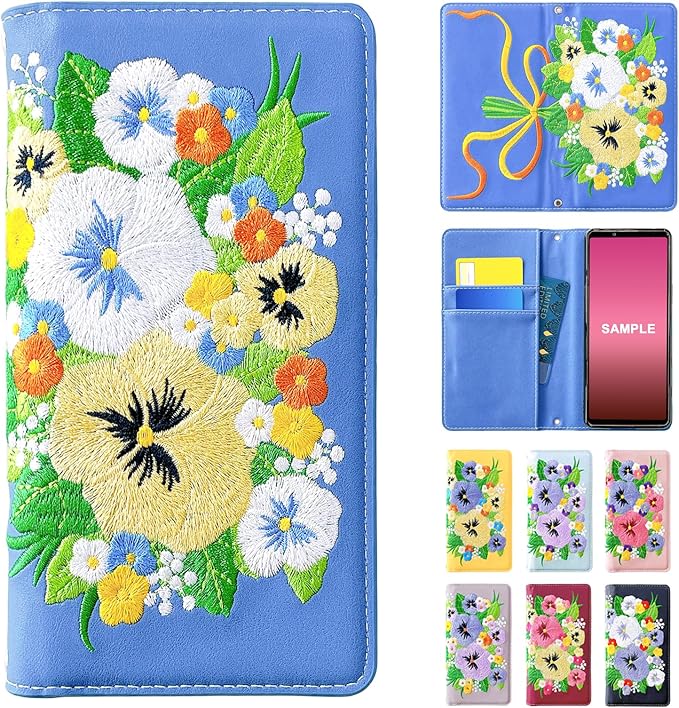 Google pixel 9 pro 専用 ケース カバー 手帳型 pixel9 pixel9pro pixel9ケース pixel9proケース Googlepixel9ケース Googlepixel9proケース Googlepixel9 Googlepixel9pro 手帳ケース 手帳型ケース スマホケース パンジー刺繍 ブルー blue